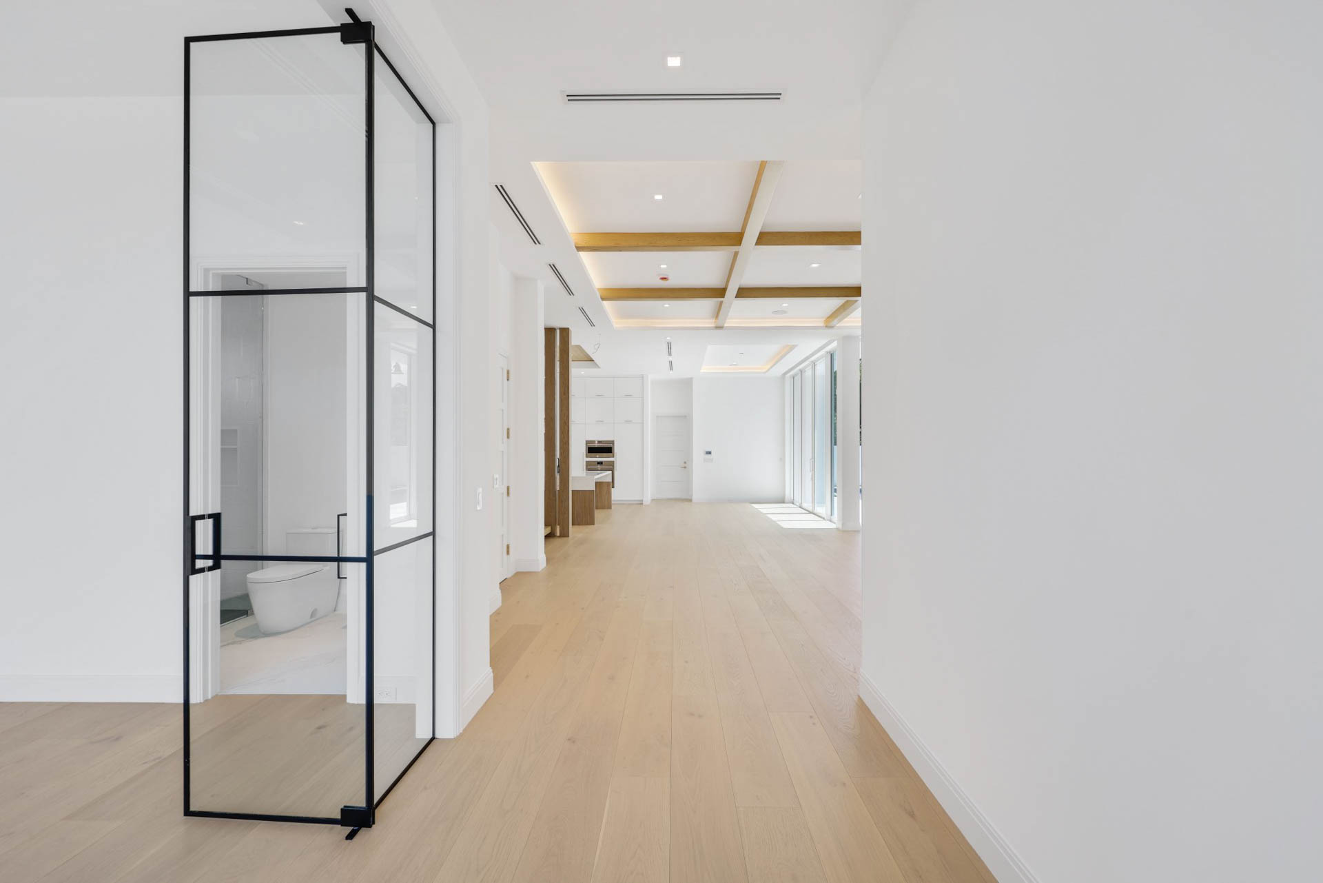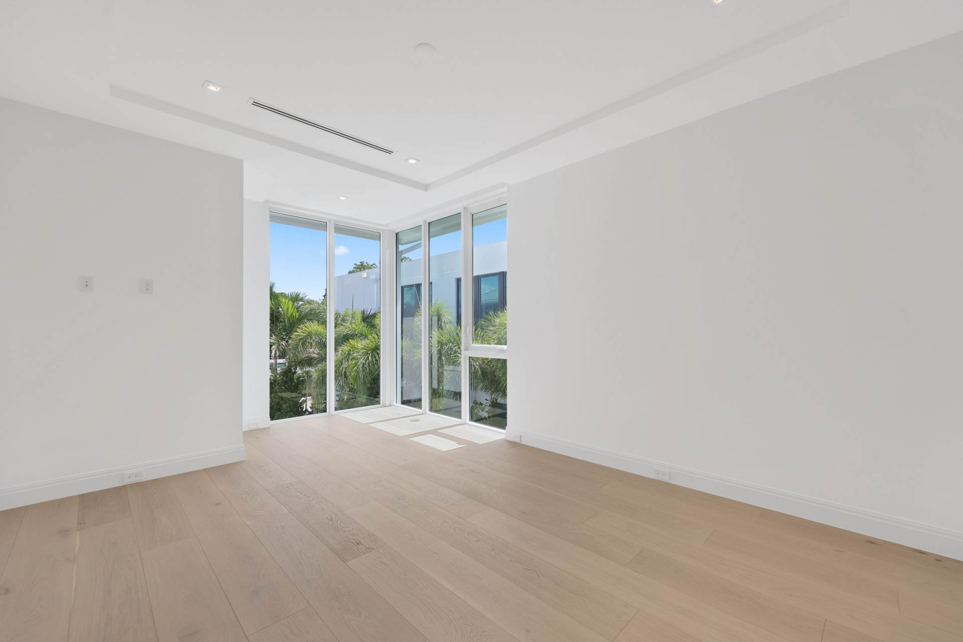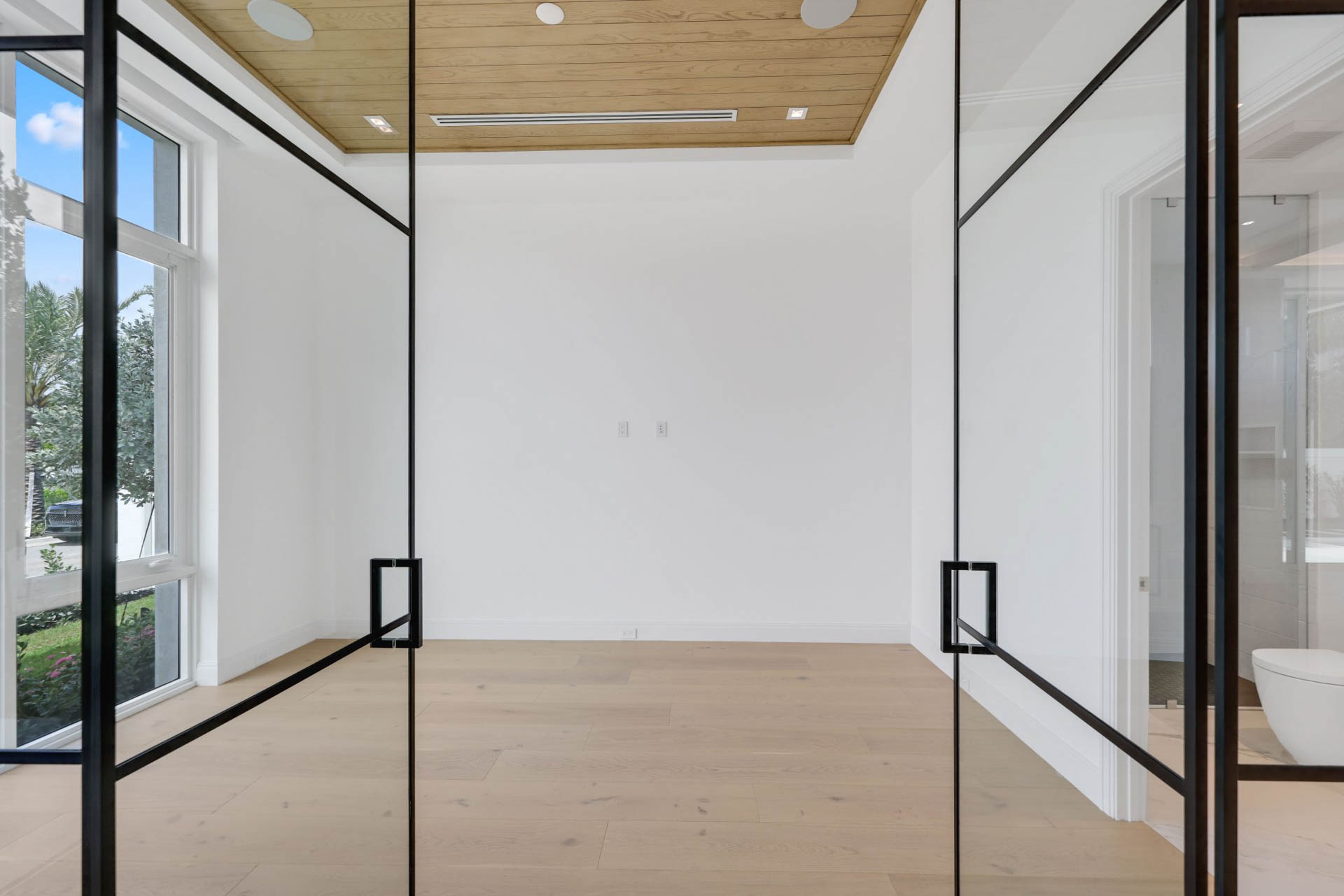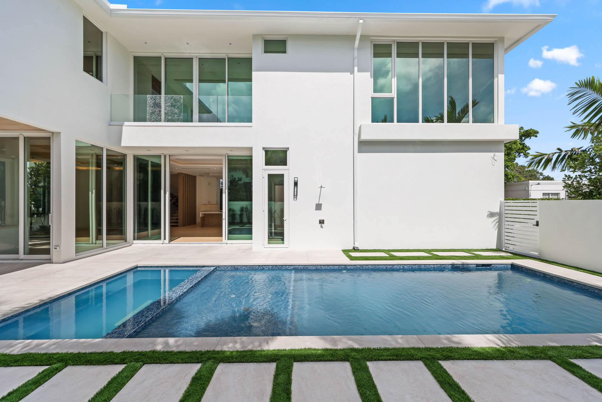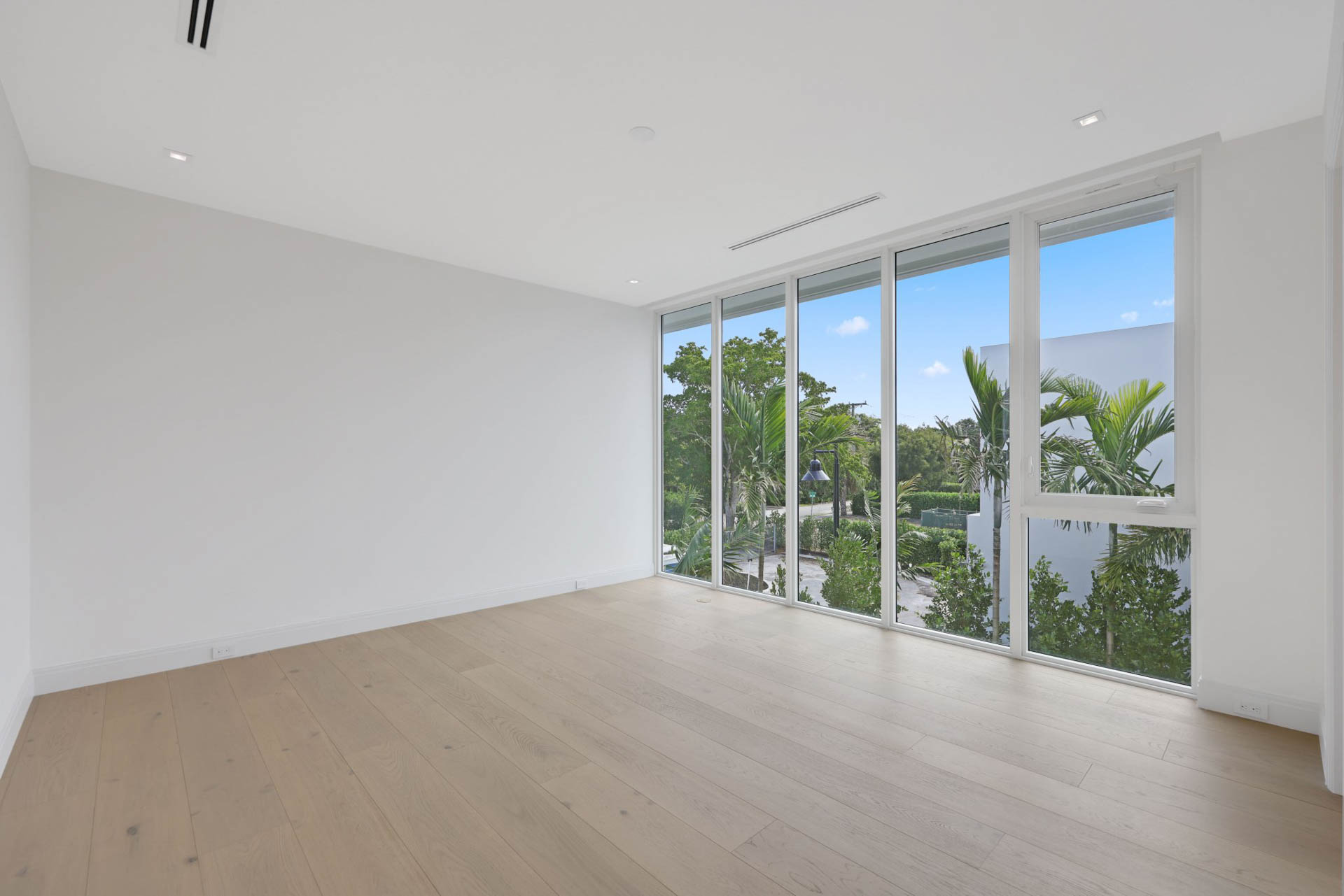 Sprawling two story home with 12’ high floor to ceiling glass on ground floor and 10’ floor to ceiling glass on second floor
